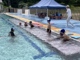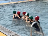 12年生は小プール。顔をつけたり頭まで潜ったりしながら楽しく水に慣れるいろいろな活動をしました。
