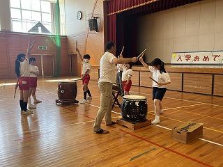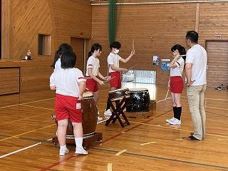 6月17日(火)に地域の先生をお迎えして、太鼓と笛の基本的な演奏を教えていただきました。