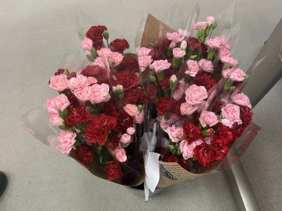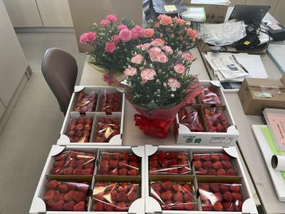 いつも支援してくださる『町野大好きさん』から、カーネーションと能登町赤崎のいちご園、宮前さんの摘みたていちごとをいただきました。