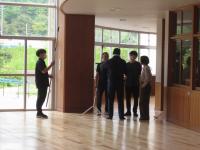 ランチルームは、このあと保育所さんが入る予定なので、教室前のオープンスペースで配膳し、各教室に運ぶシステムとしました。衛生的に、効率よく配膳ができる方法をいろいろ考えながら試しています。