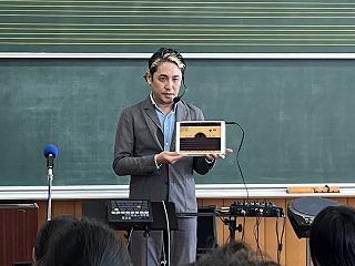 『最新型音楽特別授業 アクティブ・ミュージック』と題して、プロのミュージシャンであり音楽教育家でもあるMASAKing(マサキング)さんが来校してくださいました。