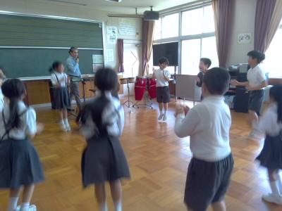 その演奏に見入る児童や、ノリノリでダンスをする児童の姿が見られました。