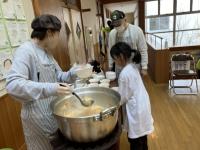 町野小では、熊本支援チームがすまし汁を作ってくださいました。