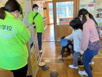 レクタイムでは、2チーム対抗で円盤投げ入れで競い合いました!