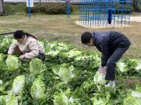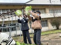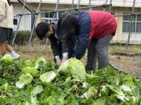 主菜や汁ものには、学校の畑で育てて収穫した白菜を使いました。