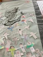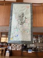 玄関ホールには、図工専科の先生が描いた昇り龍の絵と、子どもたちの願いが貼り付けてあります。