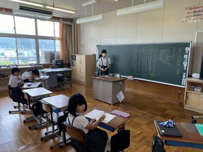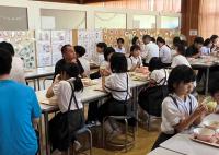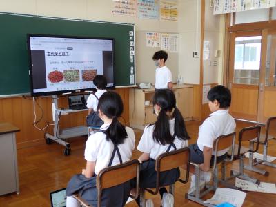 総合の発表では、「米作りのことについて詳しく調べていてすごいと思いました。」「スライドが見やすくまとめられていました。」といった感想が出ました。両校にとって実りのある交流になりました。