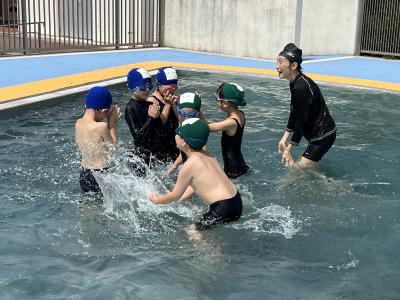 1.2年生は水に慣れることが目標です。水かけっこや鬼ごっこなどで水の感触を楽しみました。