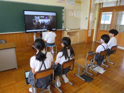 オンライン交流では、自己紹介や質問タイム、総合の授業で学習したことの発表などをしました。