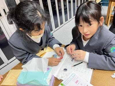 また、お薬用のカプセルとボールでつくる動くおもちゃ。坂道を転がすと生き物のように動き、何回でも試してみたくなる不思議なくおもちゃです。2時間があっという間に過ぎていきました。夏に続き、楽しい活動をありがとうございました。