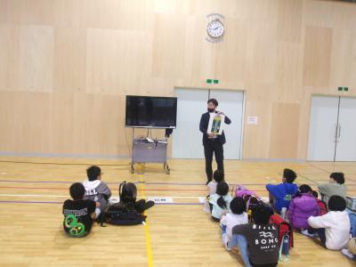 12月16日(火)です。2学期もいよいよ終わりが近づいてきました。本日の朝タイムには、毎月恒例となっている「読み聞かせグループひまわり」さんによる、2学期最後の読み聞かせが行われました。子どもたちは、この日を楽しみにしていた様子で、読み聞かせが始まると、いつも以上に静かに、そして真剣にお話に耳を傾けていました。