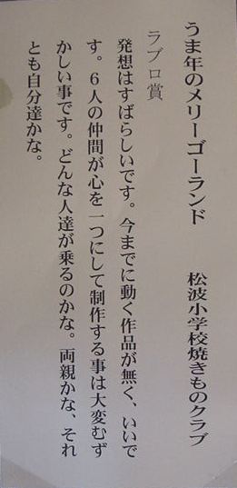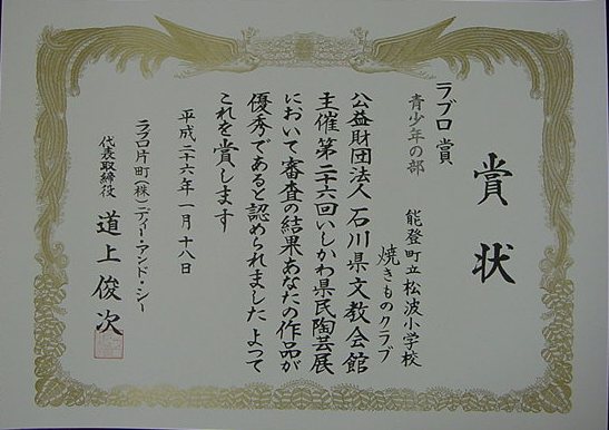 【第26回いしかわ県民陶芸展 ラブロ賞 松波小学校焼き物クラブ】