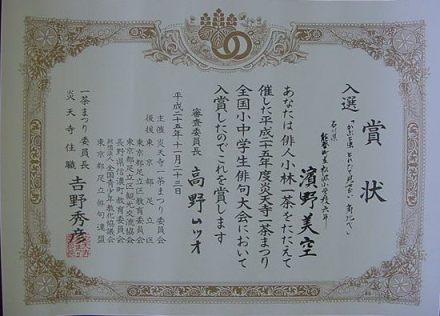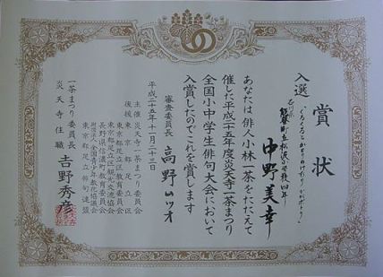 【平成25年度一茶まつり 全国小中学生俳句大会】