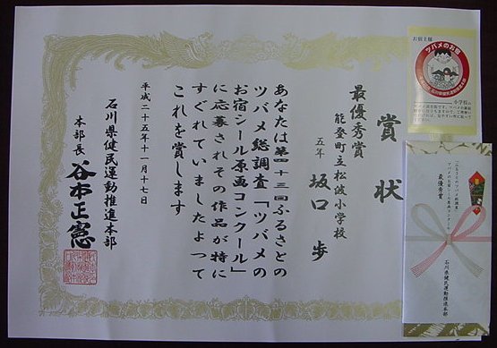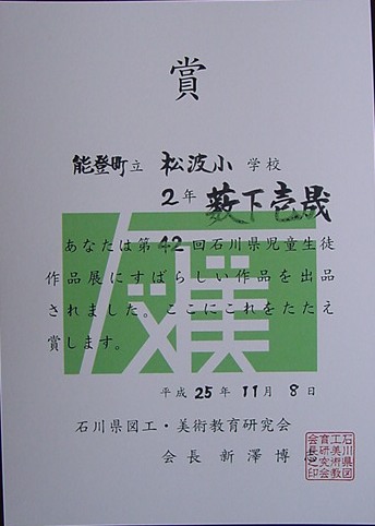 【能登町 児童生徒絵画作品展 入選】平成25年11月18日(月)