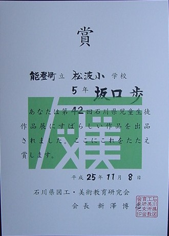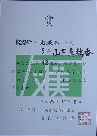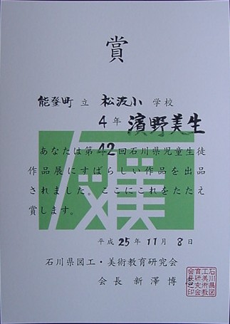 【第42回石川県児童生徒作品展】平成25年11月8日(金)