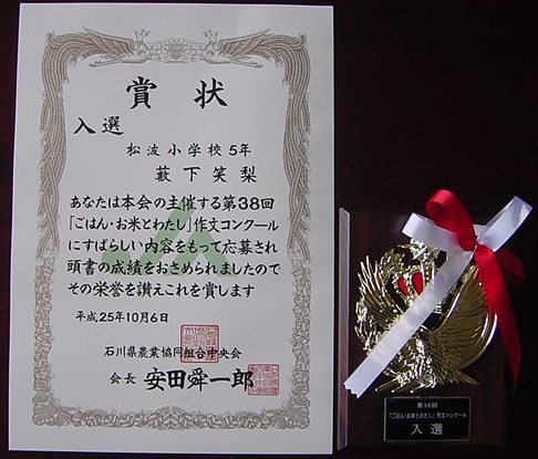 【第38回「ごはん・お米とわたし」作文コンクール 入選】
