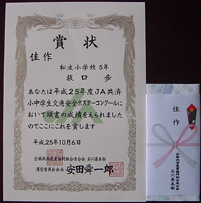 【平成25年度JA共済小中学生交通安全ポスターコンクール 佳作】