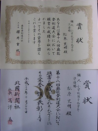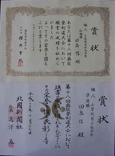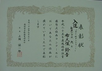 各種大会参加及びコンクール等に出品し、いただいた賞典を紹介します。