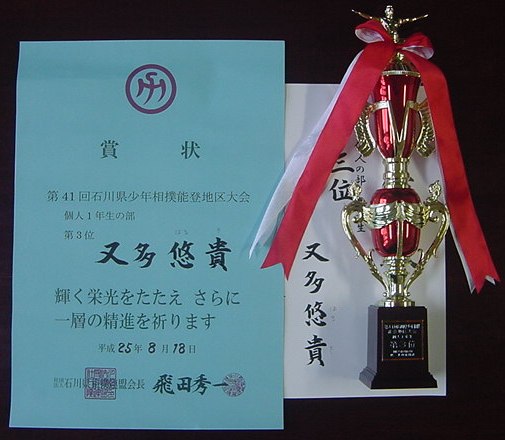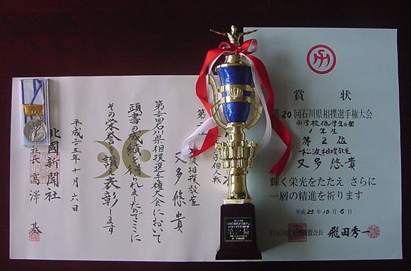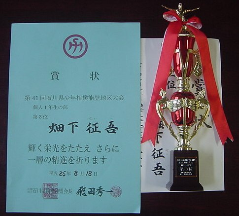 【第20回石川県相撲選手権大会 小学校低学年の部 1年生 準優勝】平成25年10月6日