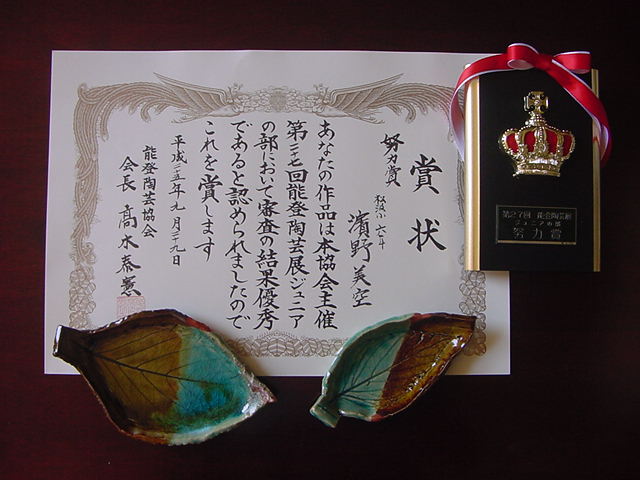 【第27回能登陶芸展ジュニアの部 努力賞】