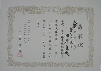 【H25年度鳳珠郡読書感想文作品コンクール】平成25年9月30日(月)