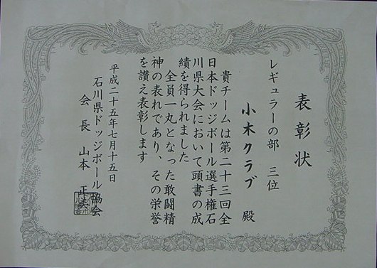【第23回全日本ドッジボール選手権石川県大会】平成25年7月15日(月) 於:物見山運動公園総合体育館