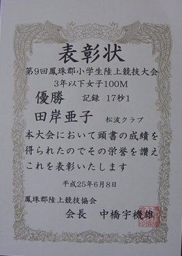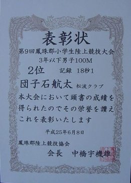 【第9回鳳珠郡郡小学生陸上競技大会】平成25年6月8日 於:内浦陸上競技場