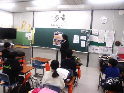 12月18日(金)の5限目に、6年生が総合的な学習の時間に取り組んでいる探究活動「自分たちの手で“今の能登町”を伝えよう」について、能登町ふるさと振興課の油谷さん、玉地さんにご来校いただき、アドバイスをいただきました。