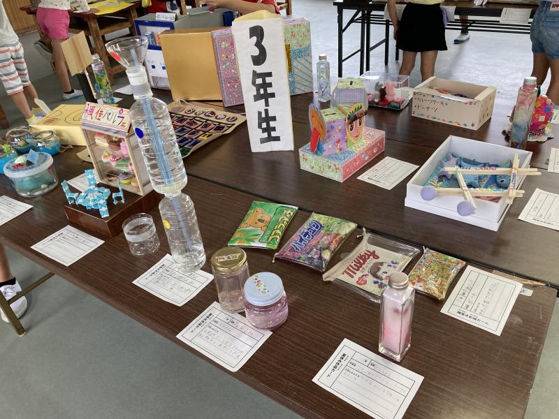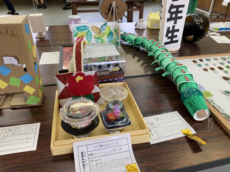 2階のなかよしホールで,夏休みに作った工作や研究の展示を行っています。