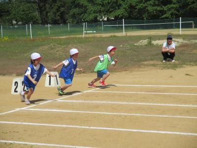 天候にめぐまれ、運動場に出ておもいっきり走っています。3階から眺めていましたが、とても気持ちよさそうでした。