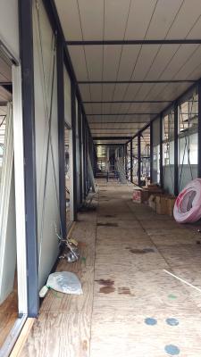 ☆室内の様子です。最後の仕上げと消防設備点検が行われていました。とても広くて素敵な体育館です。男女のロッカールーム、トイレが完備されており、大変使いやすいです。