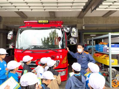 11月5日(月)に3年生が、社会科の授業の一環で消防署見学に行ってきました。消防署では、実際の消防車や救急車を見学することができ、消防署員の方のお話も聞くことができました。教科書では学べないたくさんのことを知ることができました。能登消防署内浦分署の皆様、ご協力いただき本当にありがとうございました。