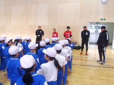 12月5日(木)です。今日は、なんと松波小にHEROの皆さんが来校してくれました。この企画は、JFA(日本サッカー協会)・日本財団子どもたちのこころのケア・トップアスリート訪問です。東京から松波っ子のもとへやってきてくれたわけです。