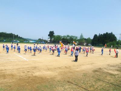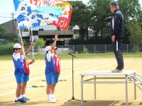 みんなに拍手で迎えられ、集会やゲームに参加した1年生がとても楽しそうで良かったです。さあ、赤団・青団の団旗も発表され、これから松波小は運動会に向けて、各団の元気のいい声が響きわたることになります。今からとても楽しみです!