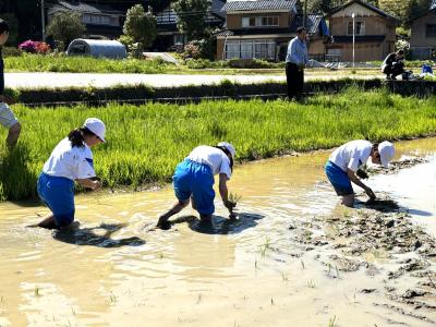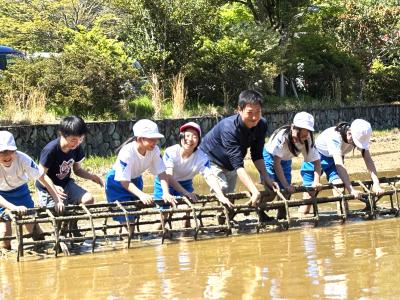 5月8日(木)にJA内浦町の皆様にご協力いただき田植え体験をすることができました。子どもたちは、初めて入る田んぼの泥の感触に驚くと同時に、足場が不安定な中で田植えを行う大変さを感じていました。5年生は、社会科で米作りについて学習していきますが、実際に体験することにより、より興味・関心をもって学習できると思います。秋には、稲刈りや収穫祭を行う予定です。JA内浦町の皆様、本当にありがとうございました。
