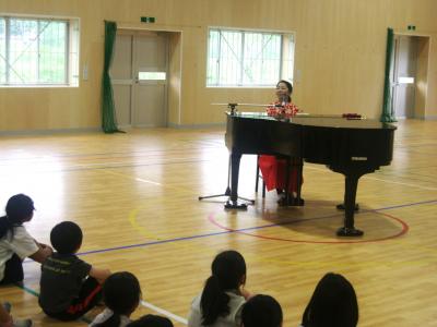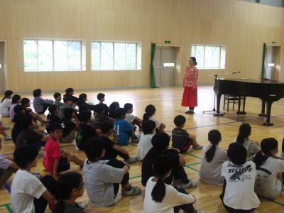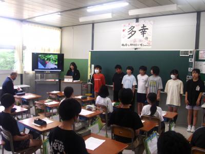 本校では、子どもたちの心に響くように自らの人生を語りながら、歌を歌ってくださいました。お話や歌を聴いていると本当に心が熱くなり、前に進んでいく勇気や励まされた気持ちになりました。最後にみんなで歌った「翼をください」はとても心に残りました。う~みさん、ご支援いただきました皆様、本当にありがとうございました。
