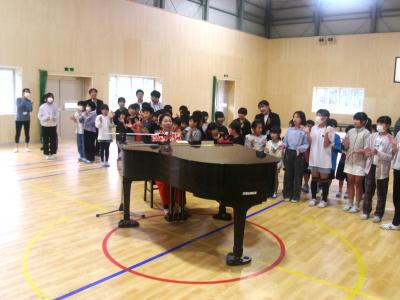 わんぱくタイムには、昨年来校され子どもたちと対話や音楽を披露してくださいました作曲家の弓削田健介先生が来校され、能登や新潟県長岡市の子どもたちとの対話やメッセージから作成した曲を披露してくださいました。「HANABI」と「フェニックス」という曲です。とても素敵な曲でした。子どもたちの思いをのせて、全国に広げていくそうです。弓削田先生ご来校いただきありがとうございました。