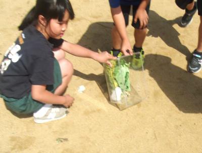 3年生は、理科の授業でキャベツ畑から採ってきた、モンシロチョウの卵を教室で育てながら観察をしています。今日は、成虫になったモンシロチョウを巣立たせるというので見てきました。虫かごの中は2匹のモンシロチョウがいました。3年生に見送られ、空高く舞い上がりました!まだまだあるので、しばらくこの光景が見られそうです。