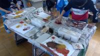 また、本日は、クラブもスタートしました。松波小には、他の小学校にはないクラブがあります。それは、本格的に行う焼き物クラブです。焼き物クラブは、まちの先生をお招きしてのクラブになります。講師は、矢後 源治先生です。今日は、魚模様の素敵なお皿づくりを行いました。粘土の状態から作品づくりを行いますが、子どもたちはとても器用に集中して取り組んでいました。今日は、粘土で型をとり、模様を描く作業でした。この後、乾燥させ釜に入れて焼いて完成になるそうです。どんな作品が出来上がるかとても楽しみです。