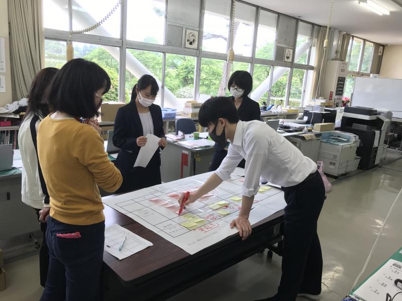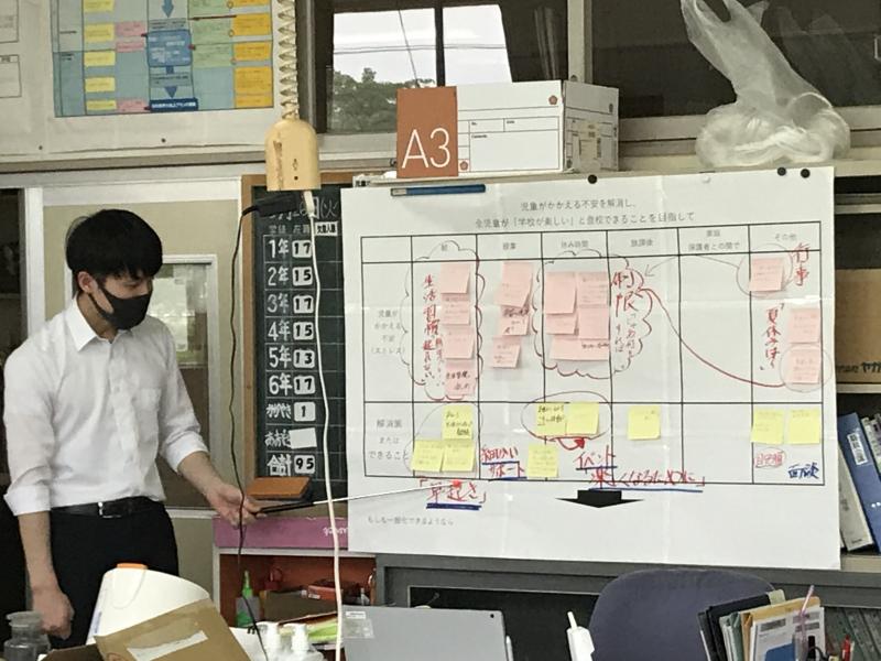 6月1日からの学校再開に向けて、多くの制限の中でも子どもたちが「学校ってやっぱり楽しいな。」と思って登校することを願い、研修を行いました。