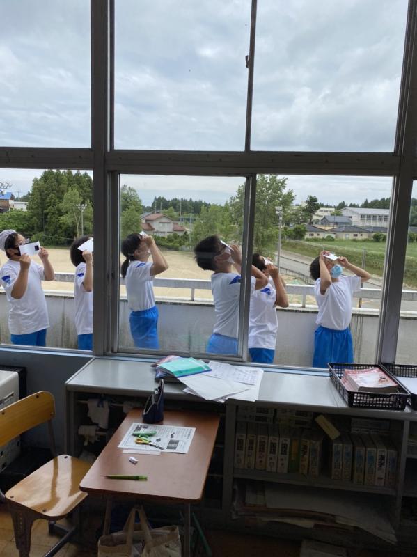 19日(金)は、天気も良かったので早速観察シートを使って太陽を見ると、子ども達からは、「おぉー!!」、「見える!!」、「すごい!!」と歓声が上がっていました。