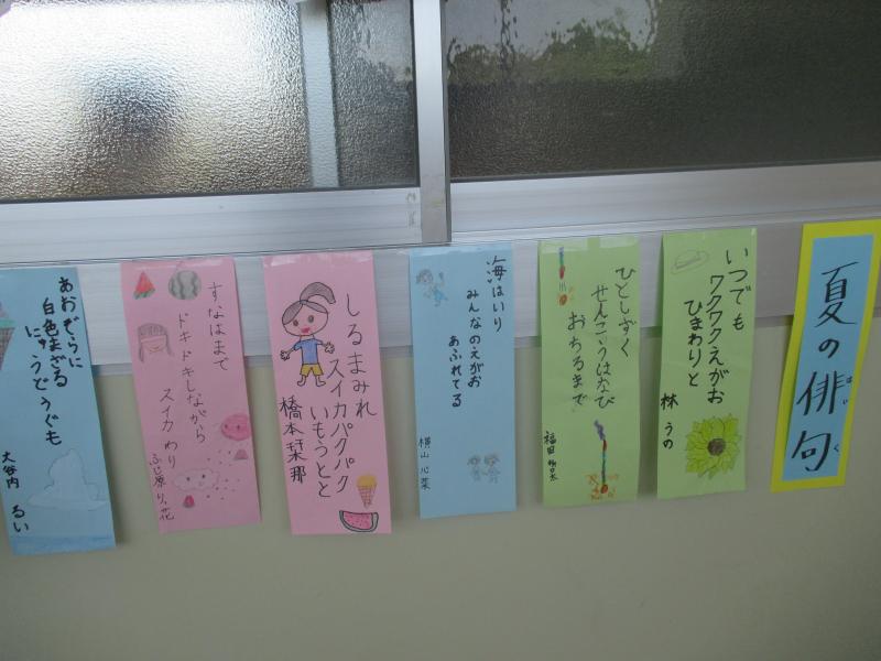 3年生の国語の学習で夏の俳句をつくりました。17字に季語を入れたり自分の気づきや思いを入れたりするのにすごく苦労しましたが、どの作品もとっても素敵に仕上がりました♪