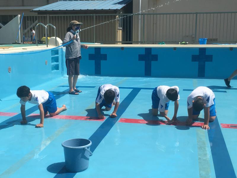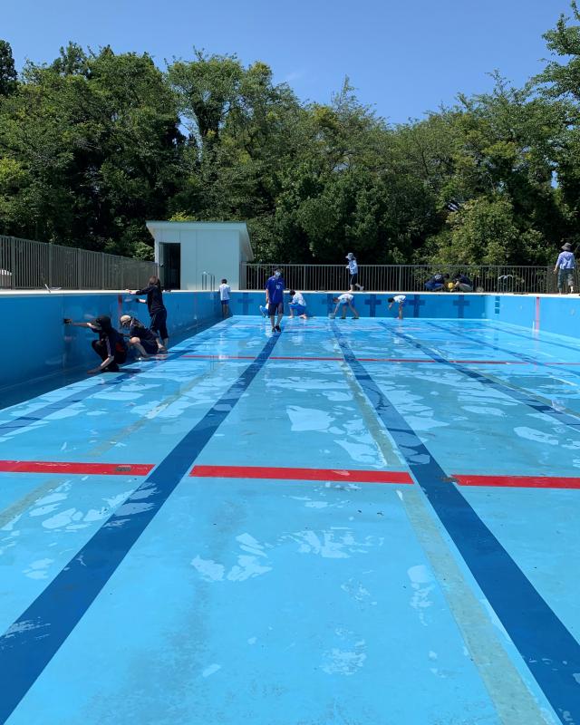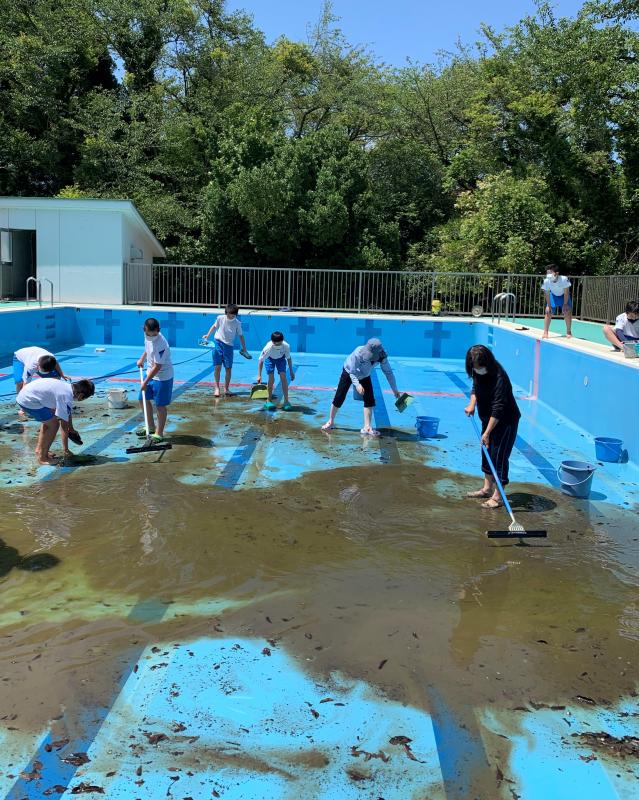 泥や落ち葉,カエルなどで汚れていたプールが・・・