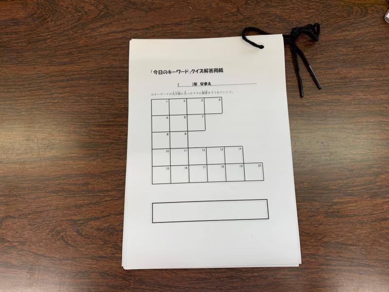 「今日のキーワード」がスタートします。今回はクイズ形式です。職員室に「解答用紙」を用意してありますので、この記事を見た人は職員室まで取りに来てください。