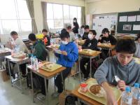 6年生にとって最後の昼食でした。今日のカレーは特別でした。松波小で食べてきた味。給食のカレーでした。3学期初日につくるはずだったカレールウや調味料が、無事だったからです。栄養教諭から、カレーの説明を聞いておいしくいただきました。私たちの胃袋を毎回満足させてもらいました。大・大・大感謝です。