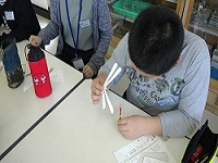 ものづくりクラブでは,バランストンボを作りました。作ったトンボは,鉛筆の上に乗せて遊びました。鉛筆の上に乗せるのがなかなか難しく,何度も挑戦していました。鉛筆の上にトンボが乗った際には,歓声を上げていました。