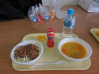 今日の昼食は、焼肉丼とクリームシチューでした。焼肉丼は、北陸チャリティーレストランさんからご支援いただきました。焼肉だけでなくレンコンやキャベツなどが入っていて、おいしくいただきました。クリームシチューも具沢山で美味しかったです。クリームシチューは、熊本のボランティア団体さんからご支援いただいたものです。その他、ヤクルトと水がつきました。美味しい昼食をいただけることに本当に感謝です。