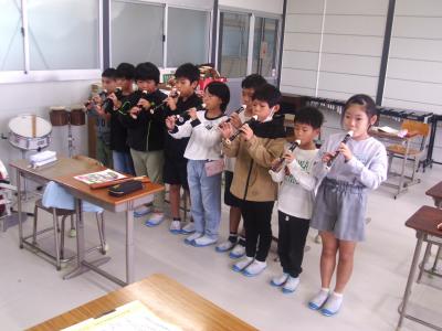 10月21日(月)の朝タイムに臨時の全校集会が行われました。5年生が10月22日に町内小学校の音楽の集いに参加するために練習してきた成果を校内に発表しました。合唱は「Belive」、合奏は「キリマンジャロ」でした。合奏は、とても大きな歌声で、素敵なハーモニーを聴かせてくれました。また、合奏では息の合った演奏を行うことができました。素晴らしい演奏でした。5年生、練習をよく頑張ってきましたね。練習の成果を発揮できました。