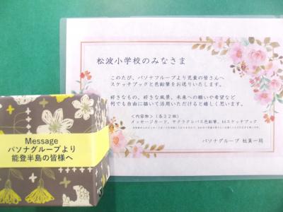 株式会社パソナグループ様から1~3年生に、メッセージカード、色鉛筆、A4スケッチブックをご寄付いただきました。