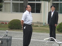 7月3日(水),今週末の県自転車大会にむけて,本校で激励会を行いました。交通安全協会会長や校長先生からは,「これまでの練習の成果を十分に発揮してほしい。」,「(昨年の6位にも触れ)昨年以上の成績を目指して頑張ってほしい。」と激励の言葉がかけられました。